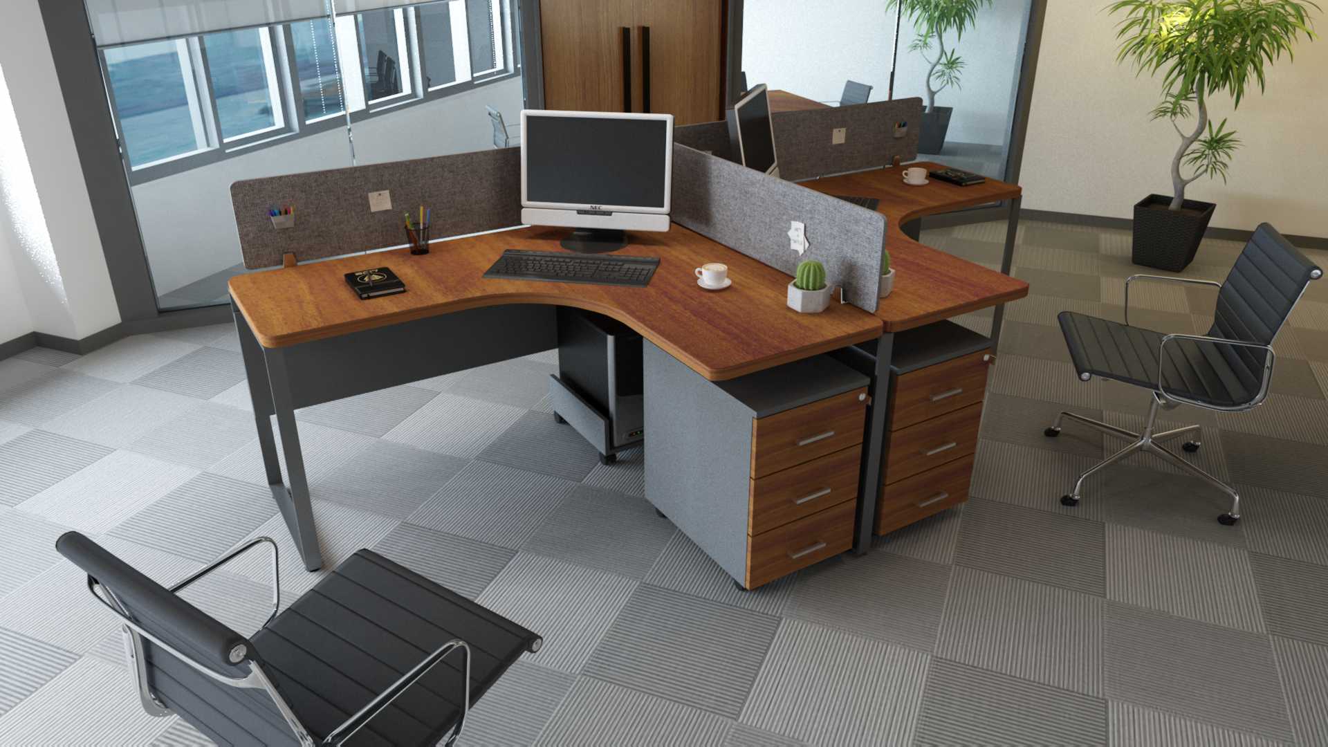 *The office is equipped with a wooden partition covered with cloth and linen.