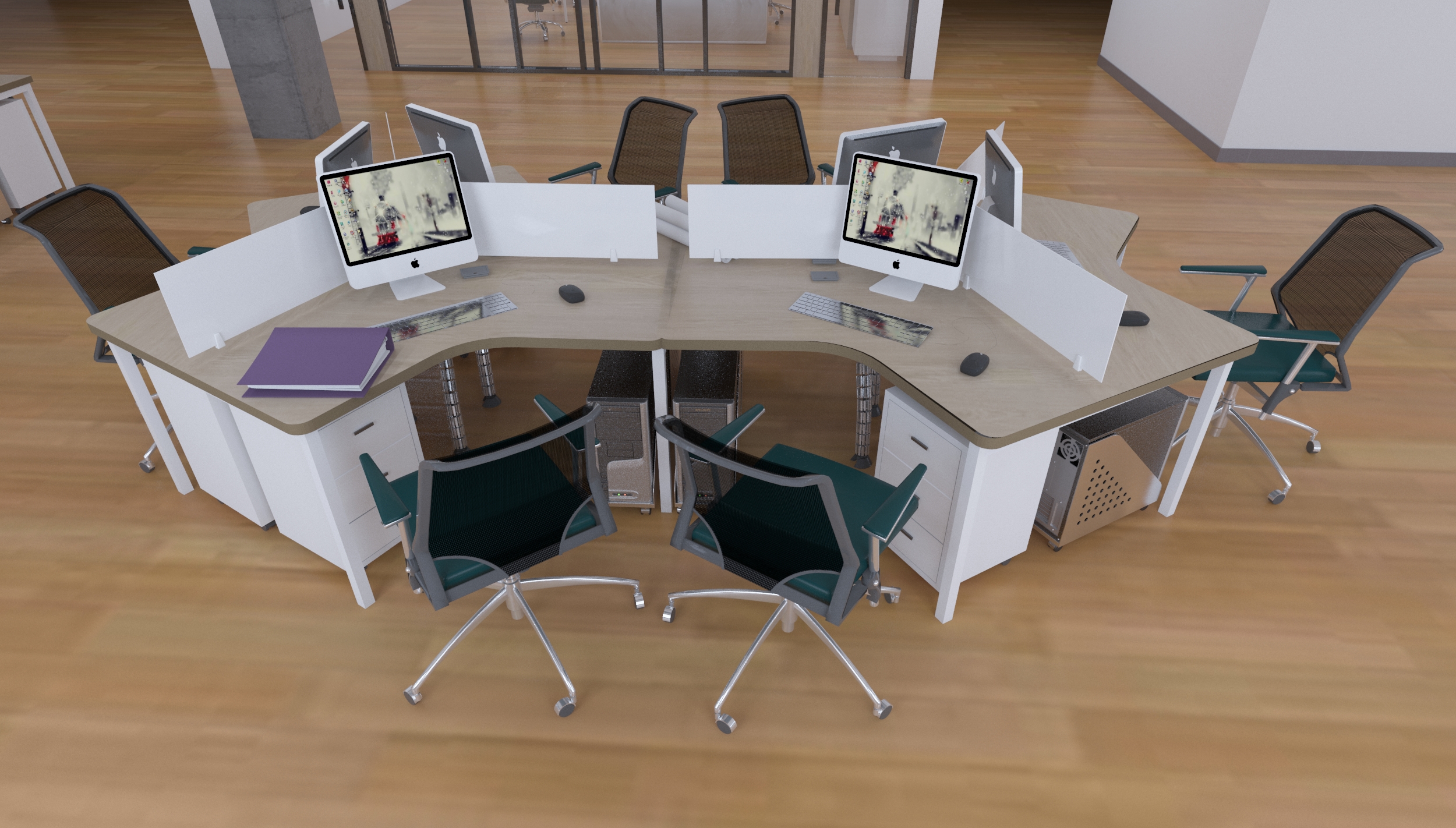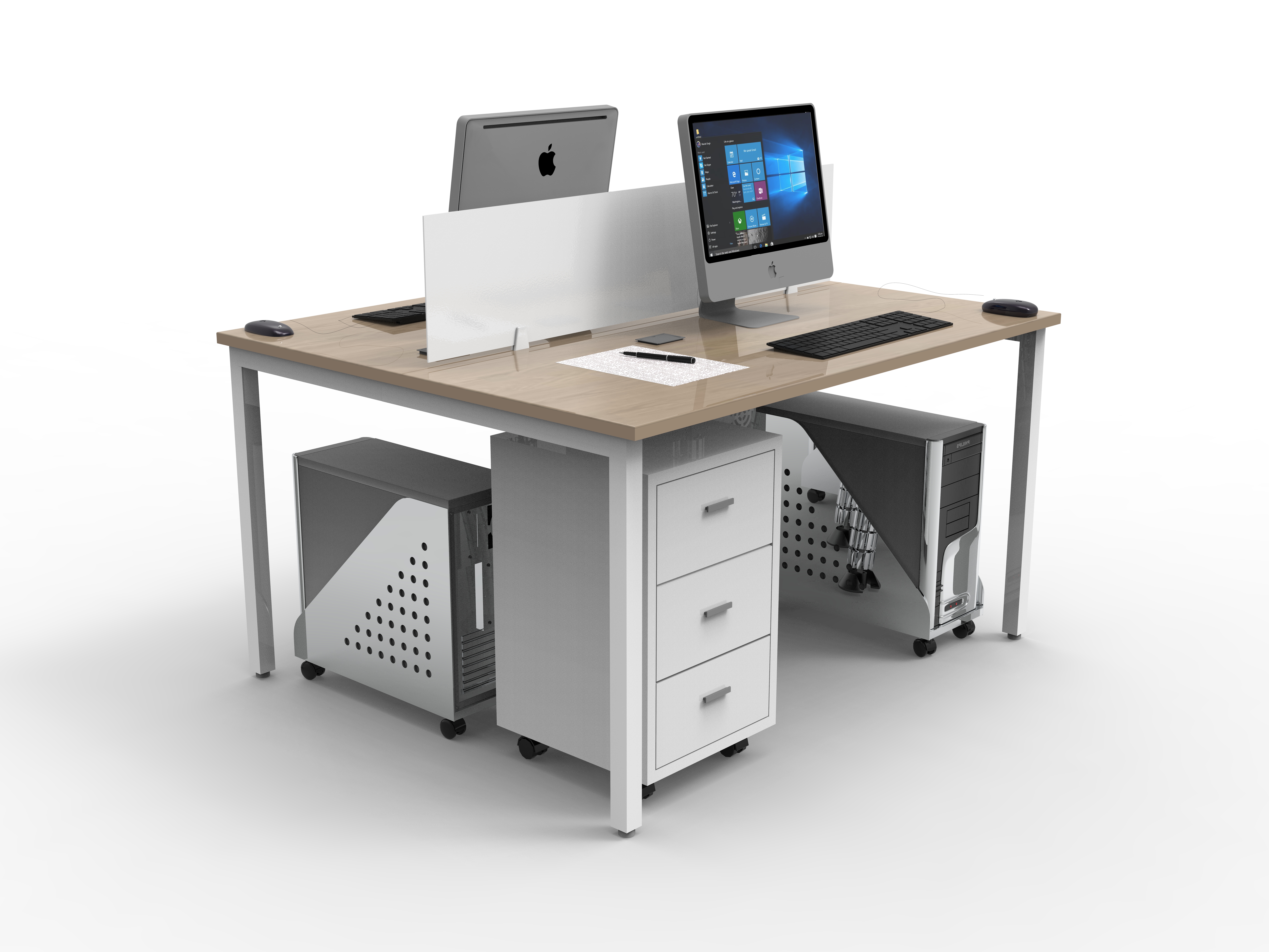 is designed using MDF laminate top with a thickness of 18 mm supported by metal legs